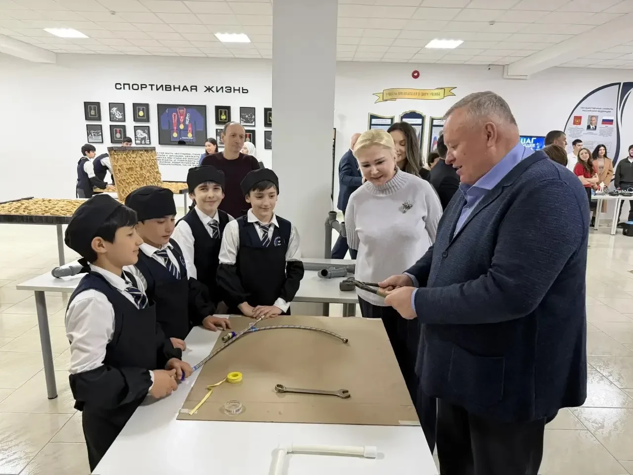 Почётными гостями мероприятия стали глава города Борис Иванович Гонцов, депутат Народного Собрания, председатель Комитета по образованию и науке Елена Ивановна Павлюченко и начальник Управления образования Лариса Насимовна Абрамова. Гости оценили высокий уровень подготовки учащихся и отметили важность практического обучения для всестороннего развития школьников.
